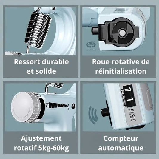 Le hand gripper testeur de force ou l'iron grip strength numérique sont parfaits pour mesurer votre force de préhension avec précision et suivre vos progrès dans le temps.