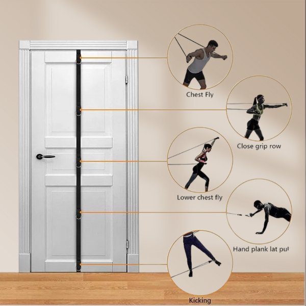 Avec notre sangle d'ancrage de porte, vous pouvez réaliser une multitude d'exercices ciblant tous les groupes musculaires, du haut du corps aux jambes en utilisant votre élastique musculation. Que vous souhaitiez renforcer vos bras, sculpter vos abdominaux ou tonifier vos cuisses, cet accessoire s'adapte à vos besoins. Transformez chaque séance en un entraînement complet et varié, tout en restant chez vous ! Profitez de la flexibilité d'un studio de fitness à portée de main.